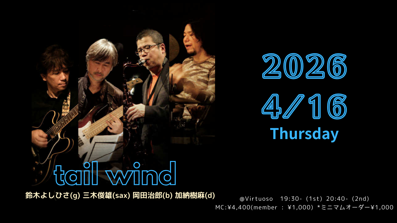 tail wind〜鈴木よしひさ(g) 三木俊雄(sax) 岡田治郎(b) 加納樹麻(d) 260416